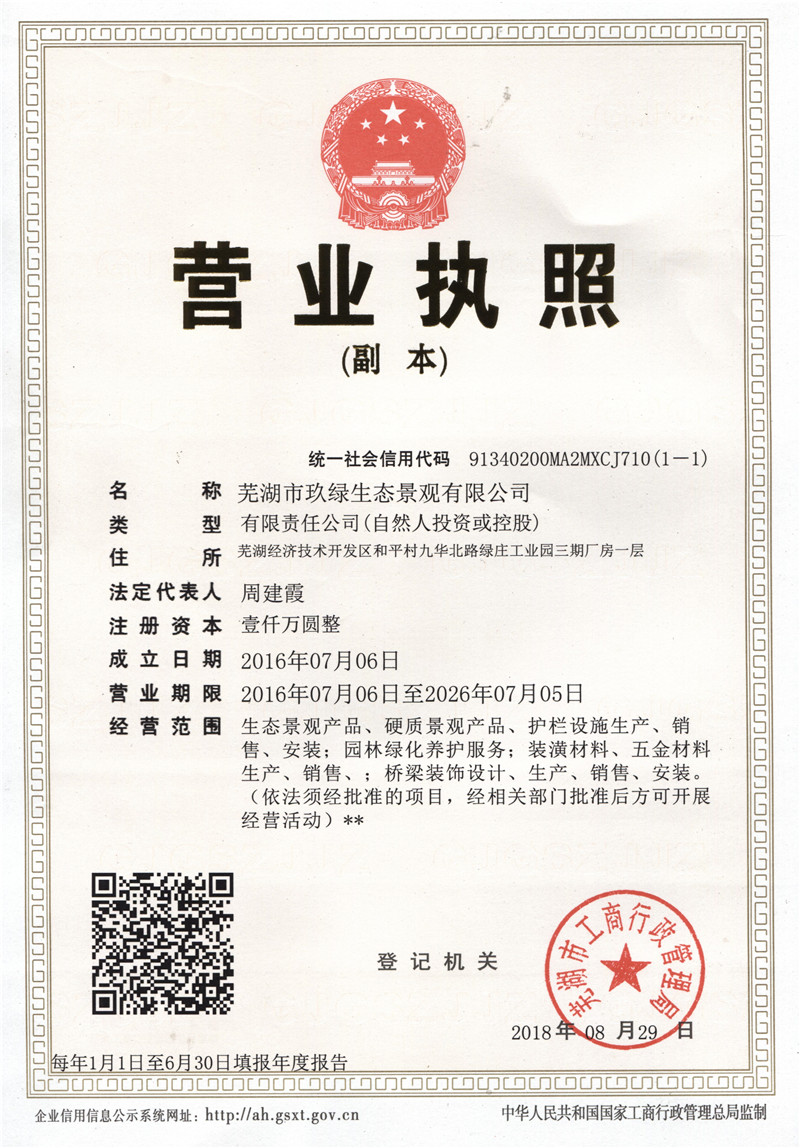 蕪湖市玖綠生態(tài)景觀有限公司成立于2016年,是綠莊集團(tuán)蕪湖市綠莊工業(yè)技術(shù)有限責(zé)任公司的獨(dú)立子公司,公司位于蕪湖市國(guó)家級(jí)經(jīng)濟(jì)技術(shù)開發(fā)區(qū)內(nèi),主營(yíng)硬質(zhì)景觀產(chǎn)品的生產(chǎn)、制造、銷售及工程施工和相關(guān)資訊服務(wù)。服務(wù)涵蓋水利景觀、交通設(shè)施、園林設(shè)計(jì)、園林資材、裝飾工程等,其仿木仿石欄桿及其仿木樁等產(chǎn)品及服務(wù)遠(yuǎn)銷中國(guó)21個(gè)省2個(gè)自治區(qū)3個(gè)直轄市系該細(xì)分行業(yè)國(guó)內(nèi)規(guī)模較大,技術(shù)水平先進(jìn)的整體解決方案服務(wù)商……